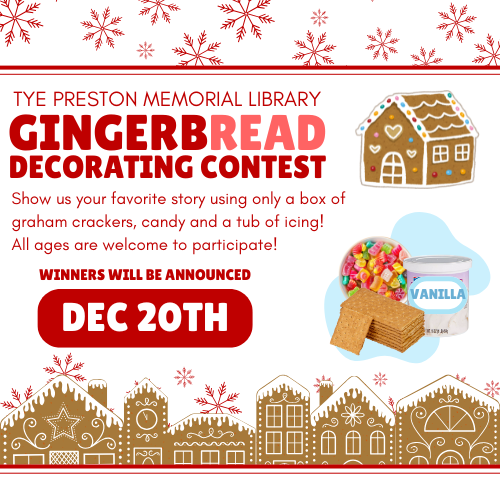 - Submit Your Entry: Email a photo of your graham cracker creation to mara@tpml.org anytime between December 1st–19th along with the title of your story or creation. If the entry is competing for "Best Little Builder," please include age as well.